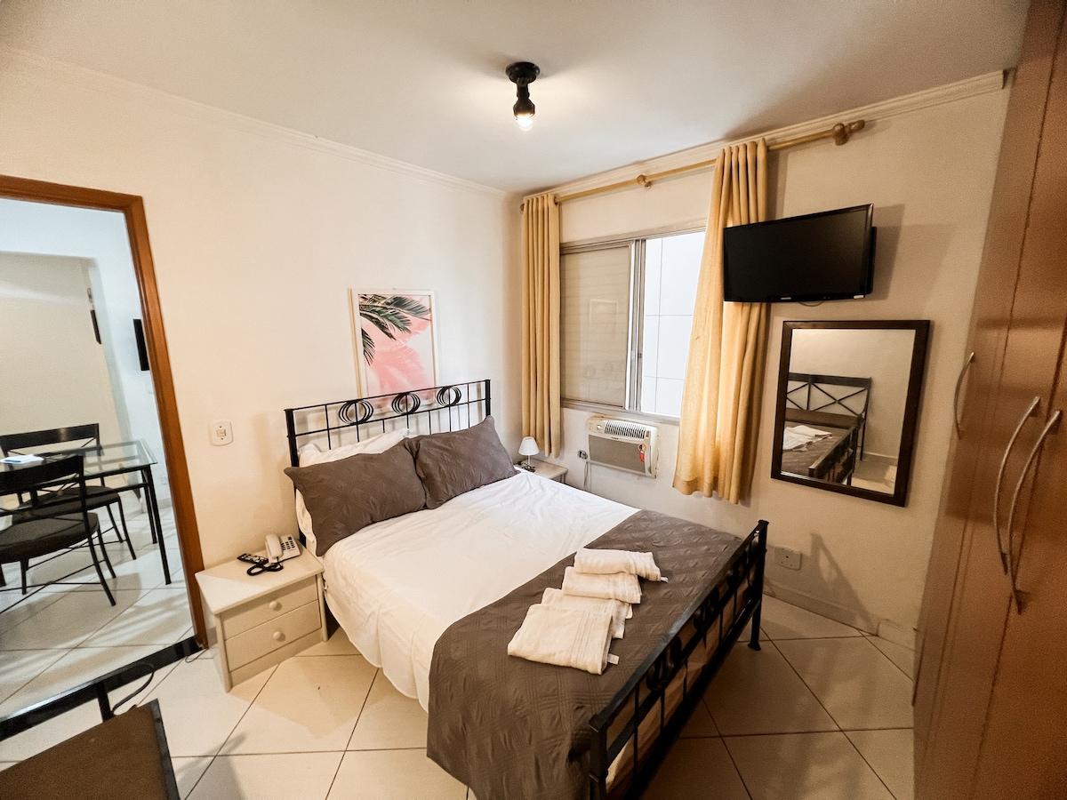 保利斯塔大道 - 700 公尺 聖保羅購物中心 - 1 公里 巴西IBM - 300公尺 Paraiso地鐵站 - 600公尺, 伊比拉普埃拉公園 - 800公尺 新消息: 地下 2 樓迷你市場(安全、實用、舒適) 寵物友善 - 每次住宿1隻寵物,小型,最多10公斤,需提供照片 入住超過30天可享受特別折扣。 您會喜歡我的空間,因為它是一個緊湊的公寓 60 平方公尺,舒適的床、全功能廚房、照明和畫作完善了夜景的美麗。浪漫的氛圍。