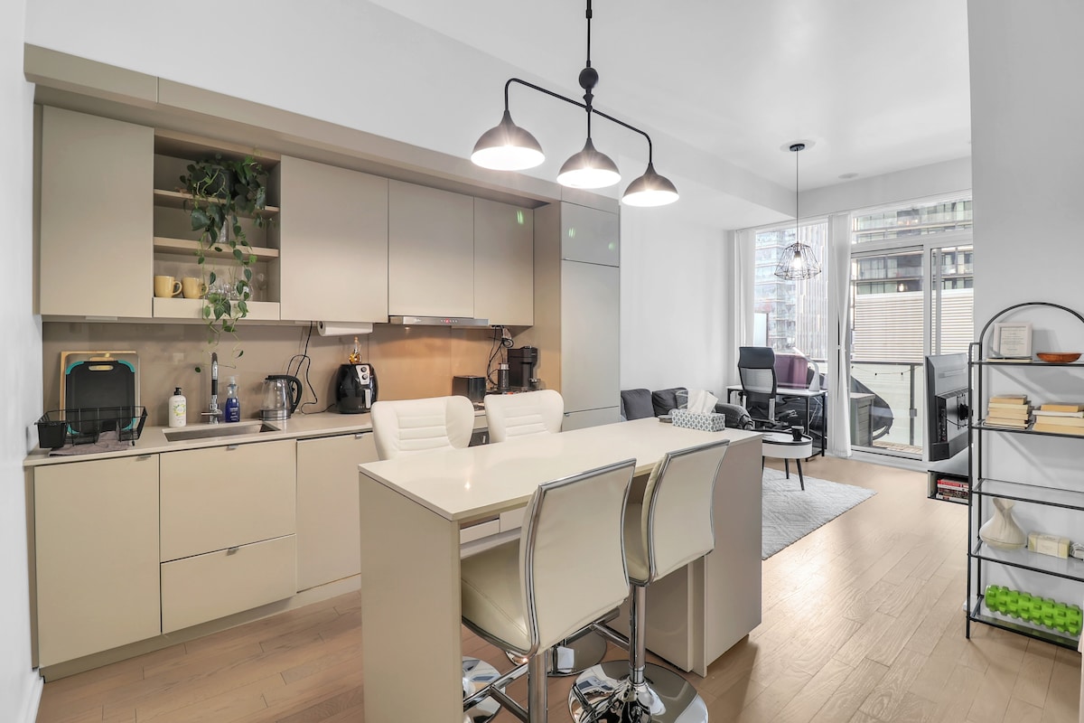 歡迎來到多倫多市中心的城市綠洲! 享受迷人的城市和CN Towner景觀、酒店級質素的床單和迷人的露台。 無論你是來工作還是玩樂,時尚的設計和自拍鏡都在等著你。 距離聯合車站( Union Station )和豐業銀行競技場( Scotiabank Arena )僅幾步之遙,可參加音樂會、猛龍隊和葉子遊戲。 周圍有頂級餐廳、時尚商店和無盡的刺激。 立即預訂,體驗市中心的舒適、便利和時尚!