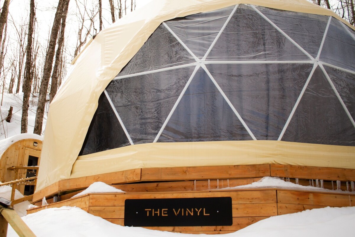 豪華湖畔網格球頂 *獨立桑拿房 *雙人牀 *觀星天窗 *全套衛浴 *小廚房 *火坑 *黑膠唱片機 享受終極浪漫的度假勝地。Mansfield-et-pontefract有很多美妙的體驗,如在Chili山滑雪2分鐘路程、滑冰和很棒的當地餐廳。 這座圓頂屋擁有70年代風格的裝飾,配有復古黑膠唱片和唱片機。