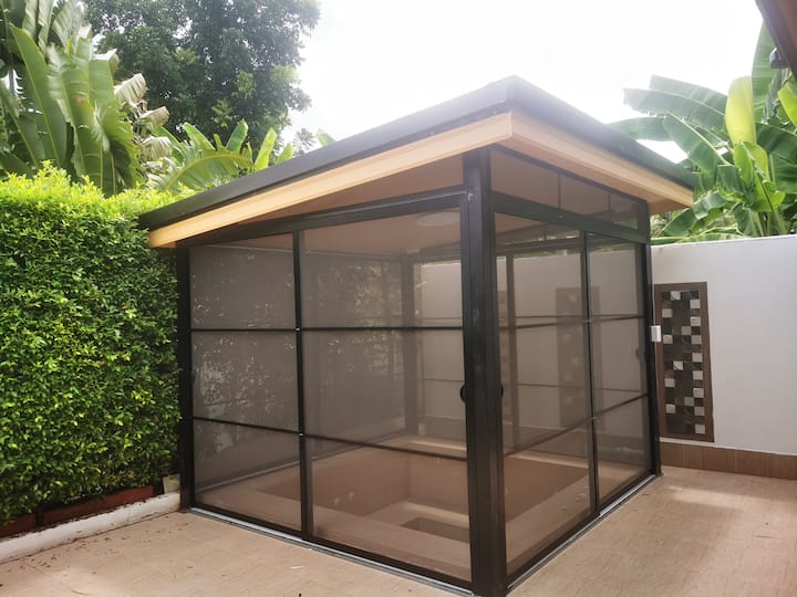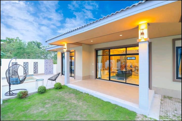 小区名称 MORDERN VILLA ,小区为封闭低密度小区,小区有录像监控安全安静,公共健身房和公共游泳池。房主就也在此小区常年居住,入住后有任何问题帮助可以随时与房主当面沟通。小区与皇家领地皇室公主庄园一墙之隔,是在华欣少有的几个与皇室使用同一水源的小区,小区地理位置在华欣地势较好,通风干燥,不会出现海边居住一样的潮湿发霉,即使是雨季台风也排水顺畅,全年不会有路面或小区淹水的烦恼,即使发生了太平洋海啸也不必担心,可保护你和度假的家人在台风、地震、海啸等自然突发状况的安全。想远离都市的喧嚣,回归纯净自然的好去处。小区紧邻黑山高尔夫球场(8分钟车程)和黑山水上乐园(7分钟车程),到华欣火车站10分钟车程,到海边沙滩浴场12分钟。附近自然风光极好空气清新,交通可自驾、租车、摩托出行或可电话预约订车,附近有多家饭店也可以不出门吃到正宗泰国大餐(Grab或Panda),附近有7.11、BIG-C大型超市、市场、酒吧、Thai massage等生活便利,比海边网红地点附近居住成本更低更适合长期居住。适合情侣朋友或全家或多家短期自助旅游或长期疗养独住或拼住。