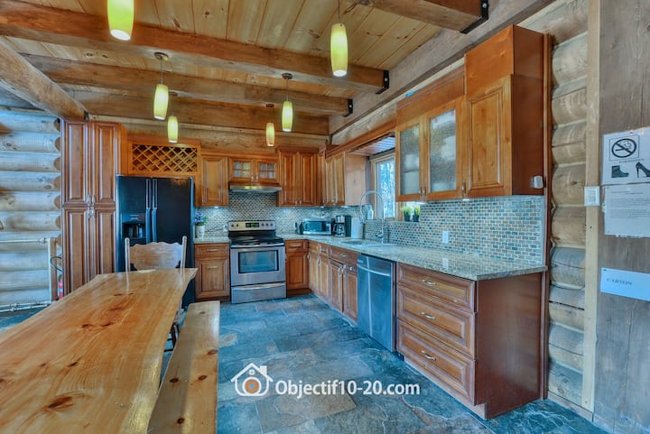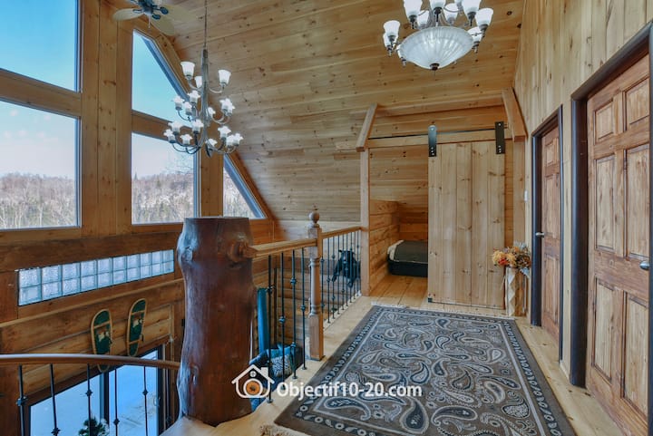 美麗的建築定制木屋,坐落在海濱景觀上,私人停車場,距離蒙特利爾不到一小時車程,距離聖索沃爾( Saint-Sauveur ) 15分鐘車程。 靠近滑雪場、商店、餐廳、超市和銀行。 設備齊全的廚房(配備必需品) ,配有花崗巖櫃檯、兩層樓的客廳,窗戶牆可俯瞰湖泊,並通往華麗的全長房屋露臺。 地下室和主樓層有美麗的石板地板,下面有暖氣。皮艇從6月15日開始