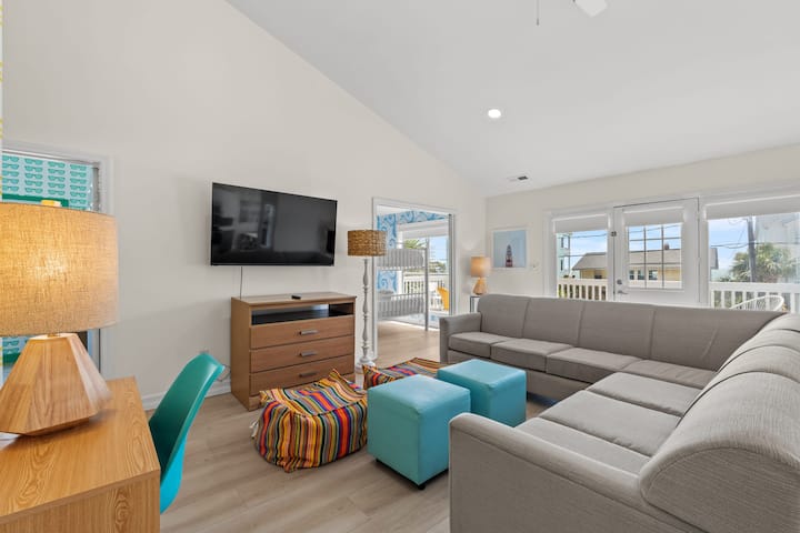 就在海灘對面的街道上! 享受設備齊全的廚房、免費WiFi、私人露臺和露臺、後院休息區和智慧電視。 開車5分鐘即可探索主街,或在10分鐘內抵達Barefoot Landing。