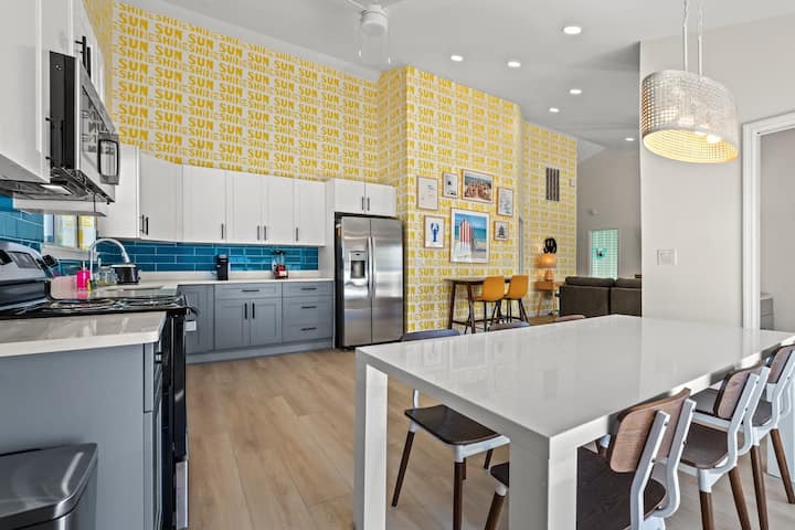 我們最近翻修和新裝修的寵物友好4BR/2.5BA空間,位於NMB的新月海灘區域,最多可容納10位房客。 在每間專門設計的主題房間中盡情享受自拍照。