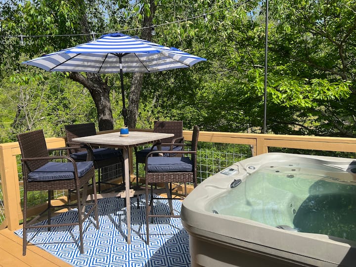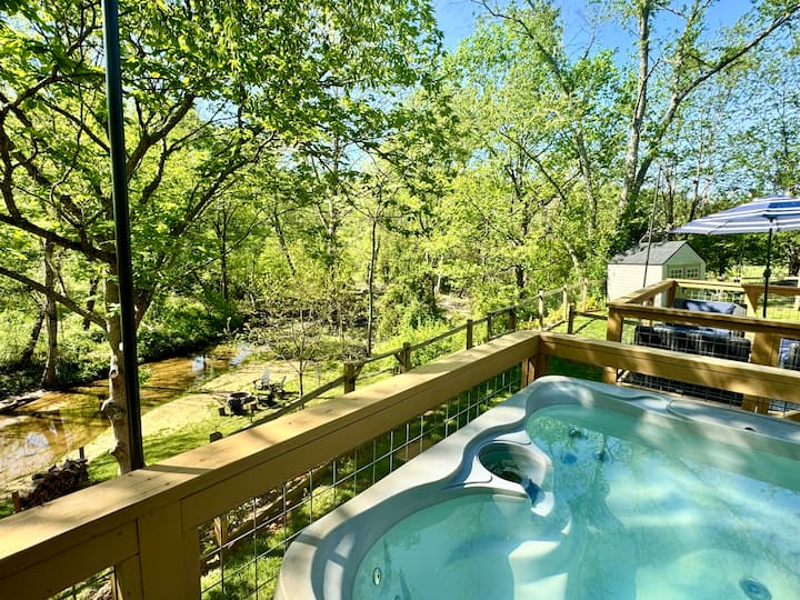 靠近阿什維爾市中心的小溪邊小屋,附按摩浴池
