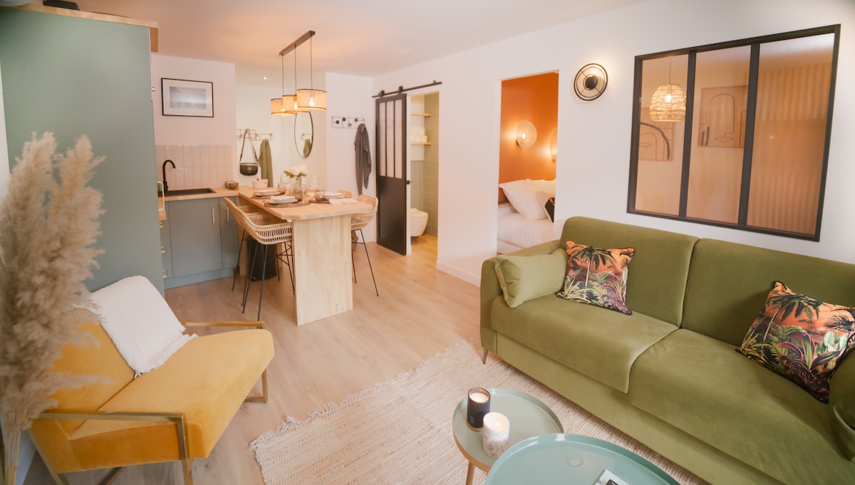 F2帶陽台,40平方米,市中心安靜街道。 全新,非常明亮。 客廳和臥室有冷氣、臥室有1張雙人床160 x 200厘米+沙發床日常床、洗衣機、洗碗機、Wi-Fi。 距離海灘、商店、餐廳、當地和夜市、SNCF火車站、觀光船40米。 僅可應要求提供安全泊車位。 可應要求免費提供嬰兒床 如要聯絡我,請查看鑰匙持有人的照片。