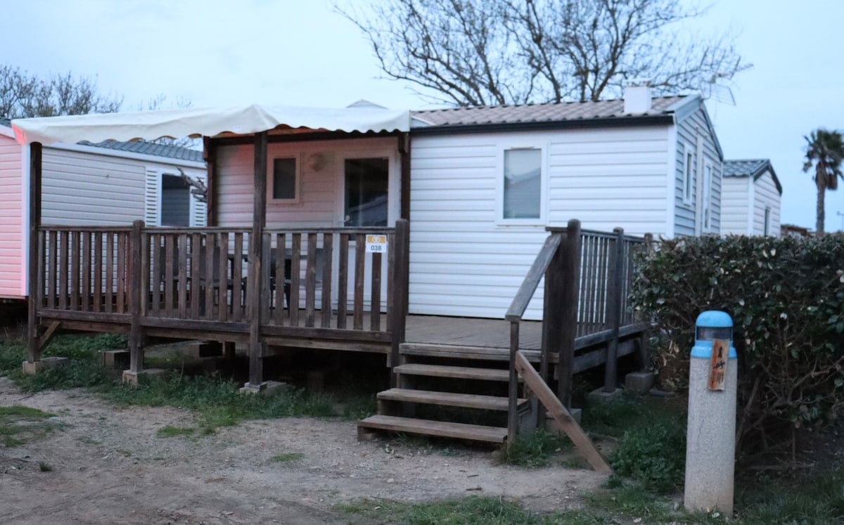 位於海邊和池塘之間的封閉地區,在一個安全、安靜和家庭式的露營地上。 可容納 5 人: - 1 間臥室,配有一張 140 公分寬的床 - 1 間臥室,配有 140 公分寬的床 + 1 張可拆卸的兒童床。 每張床都配有床墊、被子、枕頭和抱枕,並附有保護套。 可提供床單、毛巾等寢具,每張床額外收費 20 歐元和 10 歐元。 房客需自行清潔房間,或支付 50 歐元的清潔費