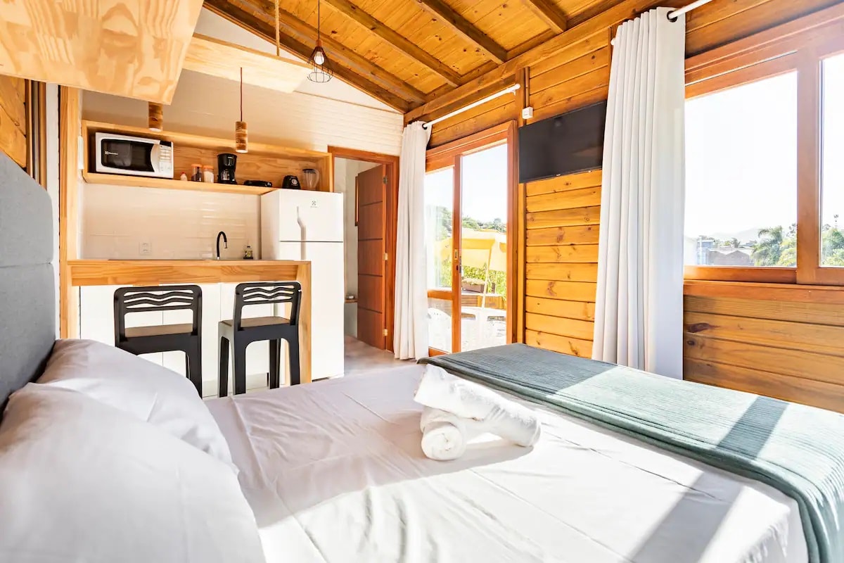 平靜與安寧的代名詞 🌿 Koru 小屋是您在聖卡塔琳娜州羅薩海灘天堂中放鬆、休息和充電的理想之選。 📍 距離羅薩海灘 (Praia do Rosa) 中心 500 公尺。 🌼 該地區有三個小屋,並排排列。建築物還提供共用的燒烤設施、停車位和一個美麗的花園,還有私人池塘。 🏠 小屋配有空調、Wi-Fi、全功能廚房、可俯瞰花園的陽臺。