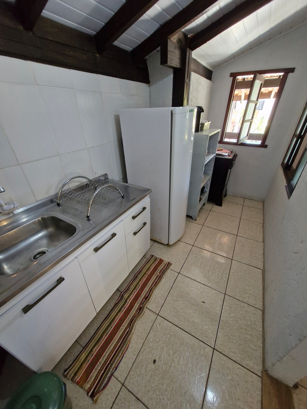 我們位於Praia da Pinheira的主街,學校前面,距離Praia de Baixo 600米。 kitineteen最多可容納4人,客廳設有雙人床和雙人沙發床。 設有冰箱、爐具、微波爐和其他餐具的全套廚房。 電視有當地頻道和Amazon Stick,並可上網。 一間浴室。 停車位。