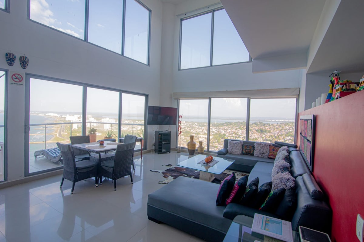 探索位於卡塔赫納最安全、最高級地區的ICONZ Sky Residence 34樓海景套房,距離海灘僅幾步之遙,距離城牆僅5分鐘路程 透過落地窗欣賞卡塔赫納的天際線,並在巨大舒適的陽台上休息。 你一定會喜歡: ✨現代設計和全面冷氣 ✨令人驚嘆的泳池、健身房、桑拿、24小時保安 ✨女傭和禮賓 ✨優質床褥、床單和枕頭 ✨24小時智能門鎖自助入住 ✨智慧電視
