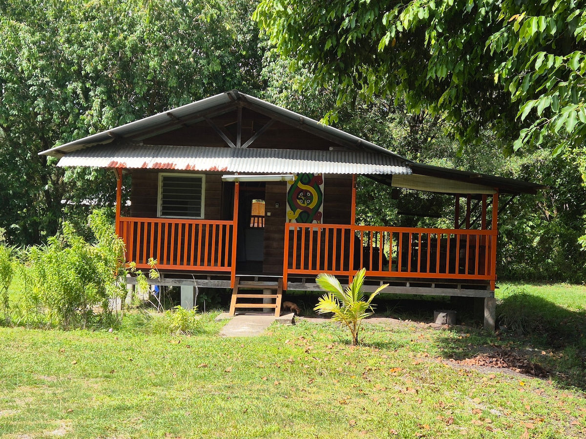 Carbet/獨立木屋,有兩間封閉的臥室,一個室外露臺,廚房和浴室(有熱水)通往森林。 您可以使用房源的大型遊泳池和私人停車位(最多2輛車)。 光纖WiFi 一公頃的水果和觀賞花園,佔地一公頃。 對於大自然和簡單的愛好者來說,安靜而放鬆的地方,火山和蜂鳥會定期拜訪您。