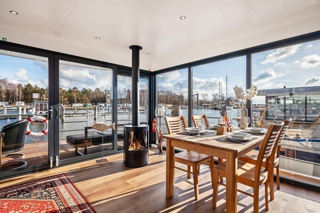 在原始的大自然中放鬆身心,意味著放鬆和休息。 我們的船屋在約28平方公尺的船位上為您提供完全舒適的住宿體驗。 遠離緊張的日常生活,在我們的船屋裡,您可以享受您的假期。 體驗在水上的獨特感覺。 在船屋內或甲板上,您可以在田園詩般的海濱村莊欣賞美麗的日落。 在冬季的月份,壁爐提供舒適的住宿體驗。