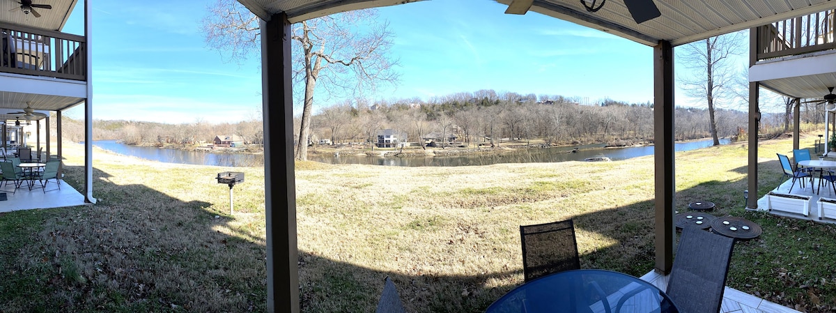 來我們位於Table Rock Lake的寧靜海灣享受寧靜的度假。在私人露臺、按摩浴池、室外淋浴間、火坑和後門海灘的客用住房放鬆身心! 在海灣享受游泳或釣魚,在槳板上曬太陽或在日落時划獨木舟。包括槳板和皮艇!歡迎家庭時間在吊床上放鬆,聆聽水流聲,在露台上烤肉或在火坑旁放鬆(包括木柴)。來大自然的美景中恢復活力吧!!