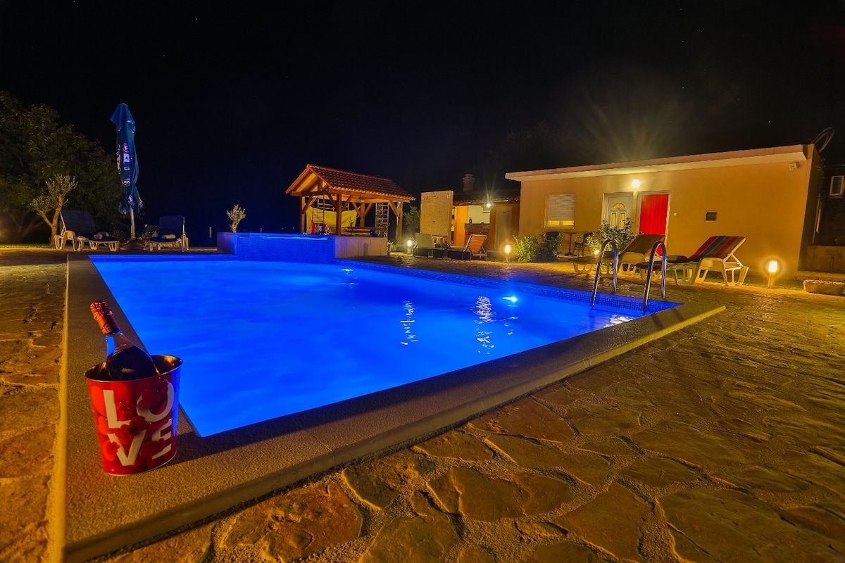 度假屋「Marin」位於Umljanovići ,距離Sibenik和Split 30分鐘車程。 度假屋面積約700平方米。 房子本身有130平方米,包括4個房間, 3間廁所、廚房、客廳。 旅居內還有暖水游泳池和按摩浴缸。 旅居設有燒烤設施、戶外廁所、更衣室、戶外淋浴間、涼亭和酒吧。 歡迎來寵物。 房子於2025年全面翻修。
