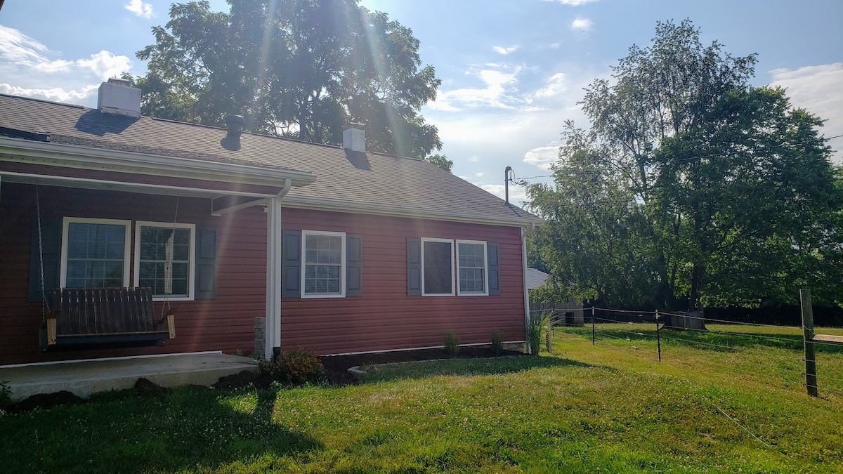 我們的太陽能農場位於藍草的中心!我們住在:Old Friends Farm、KY Horse Park附近,距離UK、Keeneland、The Ark和5家釀酒廠35分鐘路程。 我們住在一個6英畝的小農場,有牛、綿羊、山羊和雞。順道造訪穀倉,與綿羊和山羊見面並餵食牠們!您也可以在穀倉內的小「劇院」與他們一起觀看電影。 我們的房子幾乎是一個複式房屋--兩個房屋在同一個屋簷下,兩者都是獨立的。