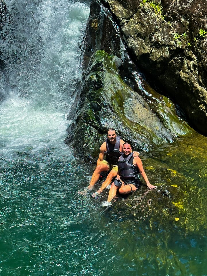 熱帶雨林探險徒步:滑水道和瀑布