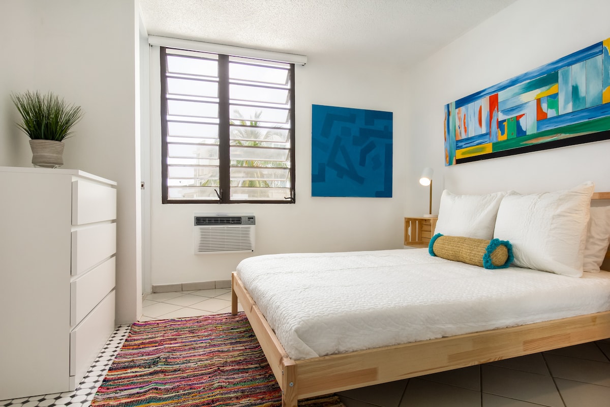 If you’re planning on staying on the most beautiful beach in the greater San Juan area, you’ve found the right place! Located on one of PR’s best strips, you’ll have turquoise waters on one side & a 2mile strip to explore on the other. Just take the elevator down! No hidden fees. Solar chargers. 5 min from airport, 10 min or less to Old SJ, cruise ports, downtown SJ, Santurce, Condado, etc and 45 min drive to El Yunque. Free parking, air conditioning, hot water, beach equipment, SmartTV, Wi-FI.