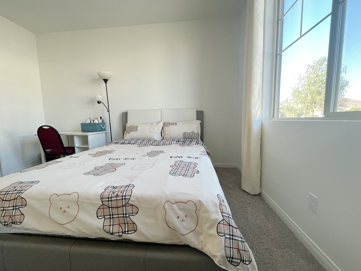 舒適的單間公寓客用住房與我們的房子分開,沒有連接的牆壁,在我們的房子前面,所以如果您有任何需要,我們都可以提供協助。 全新雙人床尺寸的冷凝膠/記憶泡綿床墊。 小區域配有冰箱、Kherug咖啡和微波爐。房客使用智慧密碼門鎖入住。靠近蒂梅丘拉(Temecula)的酒莊和跳傘。1-1.5小時即可抵達海灘、迪士尼樂園和許多遊樂園和水上公園。