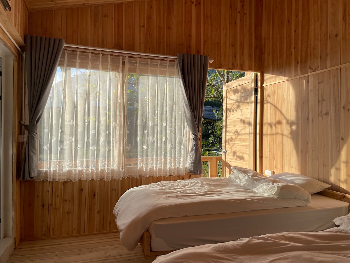 Nếu bạn cần 1 nơi yên tĩnh để nghỉ ngơi? Nằm trên giường bạn cũng ngắm được thung lũng và mây? Có đường đi bộ thăm ruộng bậc thang những lúc rảnh rỗi? Đi bộ hoặc grap ra trung tâm Sapa chỉ 2km? Căn hộ dễ tìm,có chỗ đỗ xe,có chỗ nấu ăn… Thì căn hộ của chúng tôi đáp ứng được:Căn nhà ấm cúng với hướng nhìn ra thung lũng có diện tích 30m2,được trang bị một giường lớn ấm áp với ánh sáng tràn ngập với 2 ban công rộng để bạn thoả sức ngắm ruộng bậc thang và thung lũng Mường Hoa