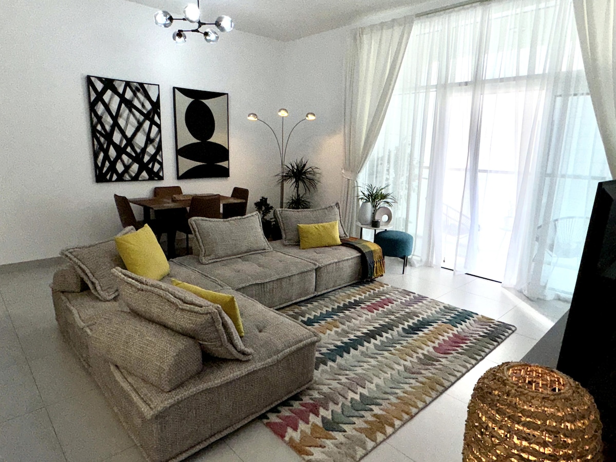 步行幾分鐘即可抵達Yas Marina賽道、Yas Mall、Yas公園、法拉利世界、水上公園、攀爬、華納兄弟主題公園、Yas Golf、Yas Musical Fountains、海灘、Yas Bay餐廳, 20分鐘即可抵達機場、羅浮宮博物館和市中心,開車50分鐘即可抵達Lego land、Dubai Atlantis、Burj Khalifa、Dubai mall。 設備齊全的1間臥室公寓,位於封閉式社區,可免費使用泳池、健身房、燒烤區域、自行車道、停車場。1張加大雙人牀和1張可折疊牀