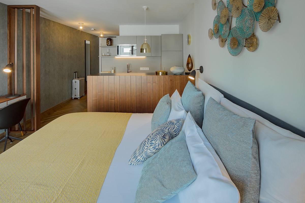 開放式設計。無障礙。28 平方公尺的空間,讓您有家的感覺。 我們的無障礙Locke Studios配備您在慕尼黑享受寧靜住宿所需的一切設備。配有舒適的 150 公分 x 200 公分歐盟雙人床和生活空間,配有設備齊全的廚房,包括餐桌、微波爐、洗碗機、洗衣機/烘乾機和設計師烹飪裝備。此外,還有空調、Kinsey Apothecary 洗漱用品的強力淋浴間、遮光窗簾、私人 Wi-Fi、Chromecast 智慧 HDTV 和 Locke 生活必需品套件等福利。
