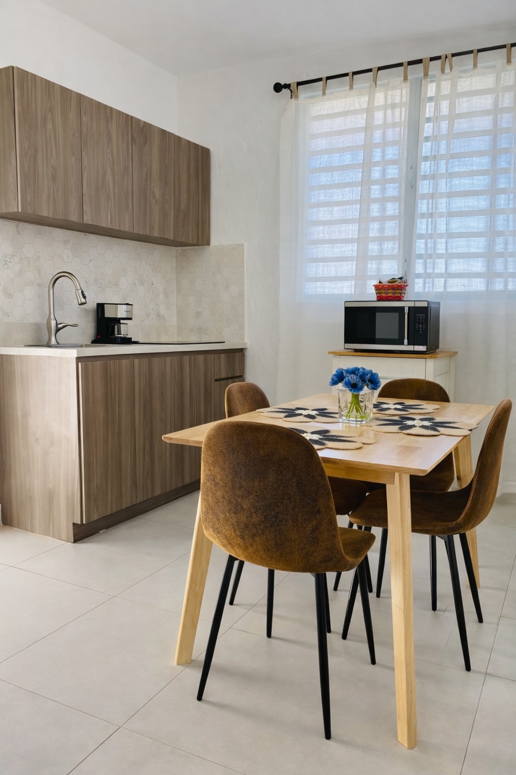 Enjoy a relaxing stay in this cozy studio located in a residential neighborhood. Designed for comfort and convenience, the space is centrally located near the airport, malls, shopping centers, and a wide selection of restaurants. The beach and Old San Juan are just a short drive away. It features a comfortable full-size bed, a dedicated dining area, and a compact kitchen equipped for light cooking, a private bathroom, outdoor space, private entrance, and a dedicated parking spot.