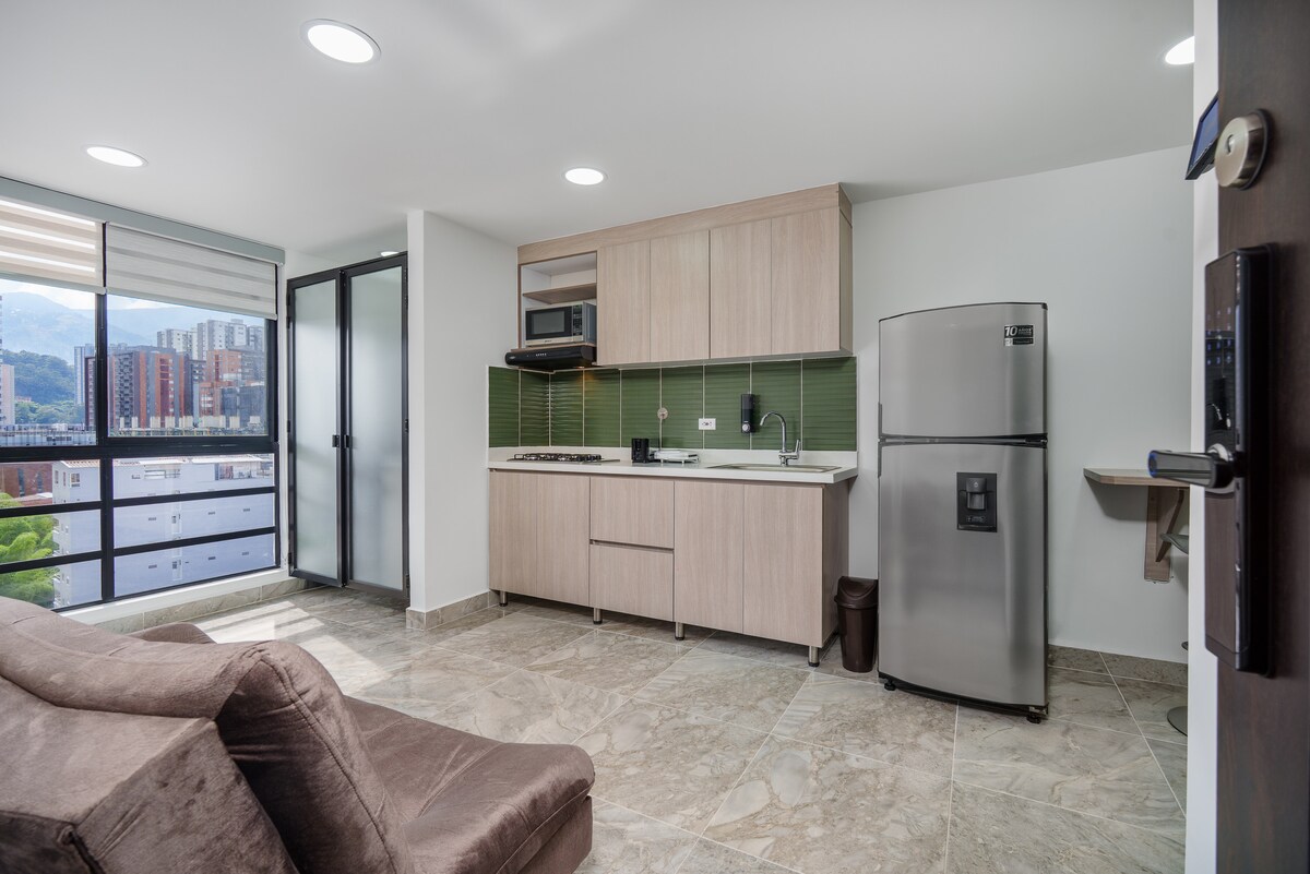 - 位置優越:位於Laureles區的中心,靠近地鐵站、體育場、超市、餐廳和70號公路。 - 可俯瞰城市景觀的優質陽台。 - WiFi (300mb) 光纖。 -空調 - 私人按摩浴池 - 24 小時全天候現場工作人員,隨時為您提供所需的一切協助。 - 43 吋智慧型電視,已安裝應用程式。 - 配備餐具、鍋子、湯匙、刀具的廚房。 - 皇后尺寸床(1.60 公尺 x 1.90 公尺) - 透明價格(請參閱規則)