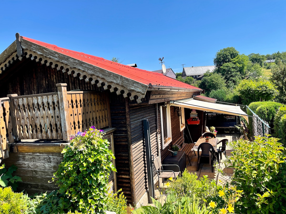 一間帶花園的小屋,適合2人入住。 位於Bad Schandau正上方,在Elbe上方150米的高原上。 位於村莊邊緣,安靜、陽光充足的位置,俯瞰 Tafelberge Gohrisch、Papststein 和 Lilienstein。 對於尋求休息和陽光的人來說,這是一個理想的地方。 朝南的露台和私人泊車位。 從旅居出發,向各個方向徒步旅行都非常方便... 我們提供高速網絡。