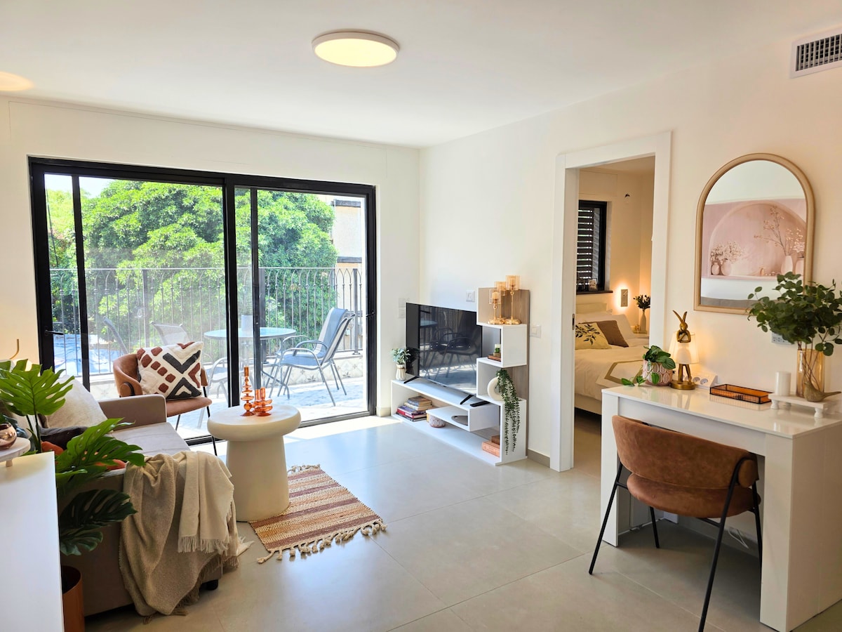 「Ono sweetest place」是一間浪漫的品牌公寓,位於特拉維夫安靜的郊區,位於本古里安機場至特拉維夫之間,距離高速公路5分鐘路程。 靠近公共交通工具。 靠近Sheba和Bar Ilan大學。 公寓設有獨立入口,家具和設備齊全。 它包括WiFi、冷氣、電視、很多私隱和更多,讓您的住宿愉快。 靠近商場、公園和許多咖啡店。 建築物內有免費停車位。 設有樓梯。