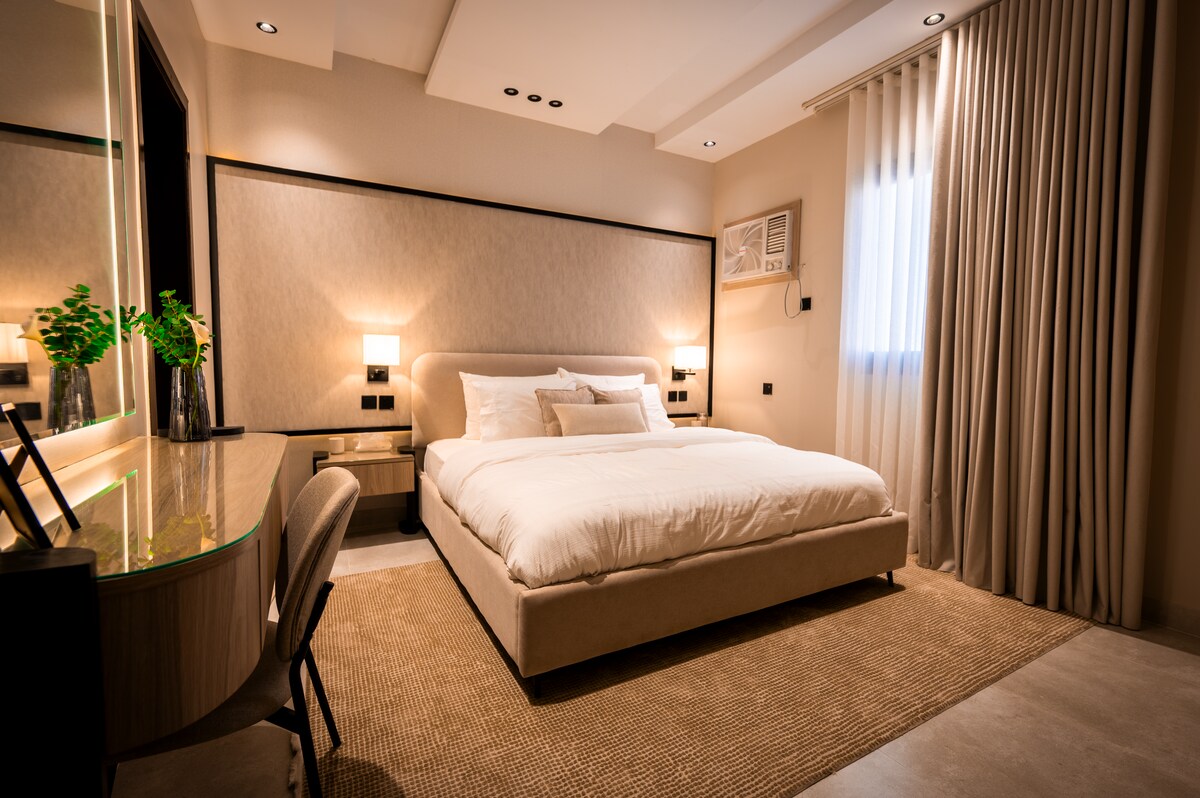 這是一套豪華、設備齊全的雙房公寓,配有客廳和女傭房,採用優雅現代的設計風格,提供極致的舒適和私隱。 位於阿爾納赫達區阿卜杜勒·阿齊茲王路 (King Abdulaziz Road),地理位置優越,鄰近機場、紅海購物中心 (Red Sea Mall)、海濱區以及方程式賽車賽事場地。 此單位設有設備齊全的廚房,配備所有電器和廚具;寬敞的客廳配有 86 吋電視,可享受優質娛樂體驗;此外,還提供高速網絡和自助入住服務。 位於吉達市中心、適合一家大細入住的高級住宿之完美之選