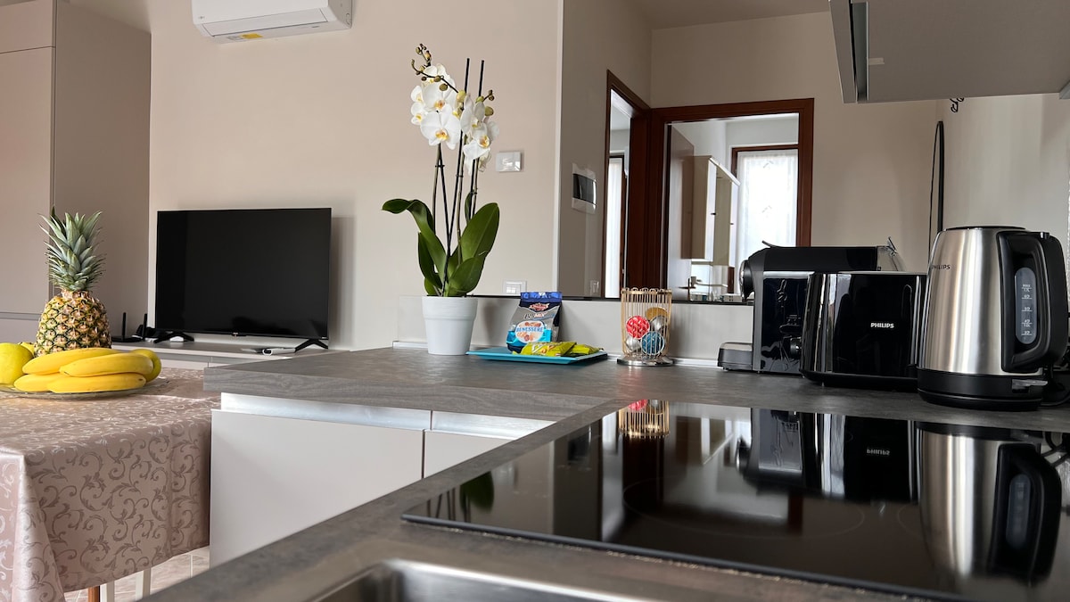 全新的公寓位於舊城區的中心,距離Terme和Scaliger城堡僅一步之遙。 非常適合家庭入住。 配備所有必要電器的廚房。 WiFi。每3天清潔一次。 當代填充物以百年歷史的傳統為背景。 如有需要,可提供停車位,價格為12 €/24小時。