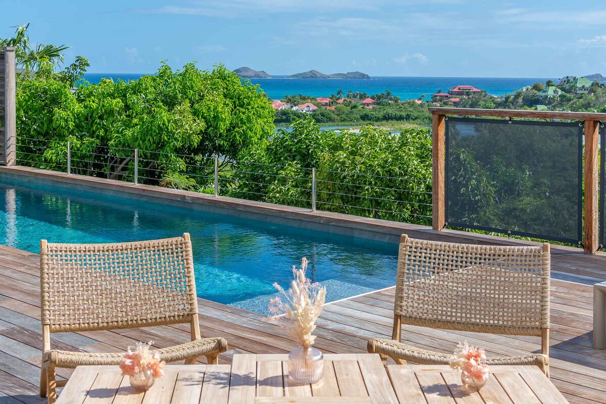 RIDE是一棟2017年的別墅,位於anse des cayes山頂上,可欣賞美麗的海景。距離海灘、古斯塔維亞( gustavia ) (主要城市)和美味的麵包店5分鐘車程。 它提供安靜和隱私,同時接近一切。 別墅可容納4人入住2間臥室,每間臥室都有自己的私人大型木質浴室。 這座別墅也適合行動不便的人士入住。