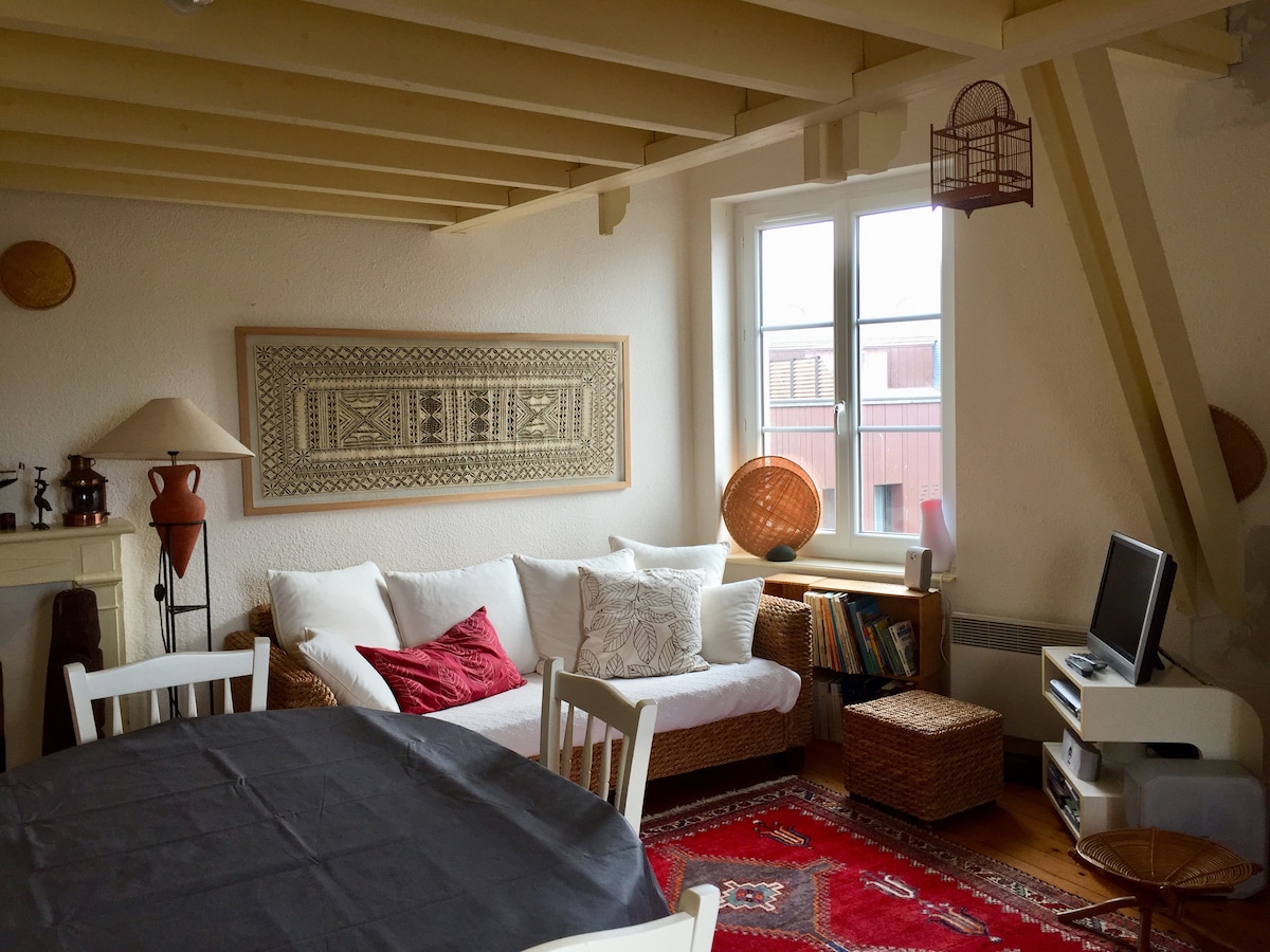 25 平方公尺的 3 星級單間公寓,位於我們獨立房屋的樓上,有通往外部樓梯的私人入口。設備齊全的廚房:電磁爐、烤箱/微波爐、大冰箱、洗碗機、咖啡壺和 Dolce-Gusto 咖啡機。帶淋浴的盥洗區。獨立廁所。更衣室和儲物空間。 您可以享受花園,那裡有桌椅。 位於市中心附近,距離火車站 5 分鐘。房子前面有停車位。