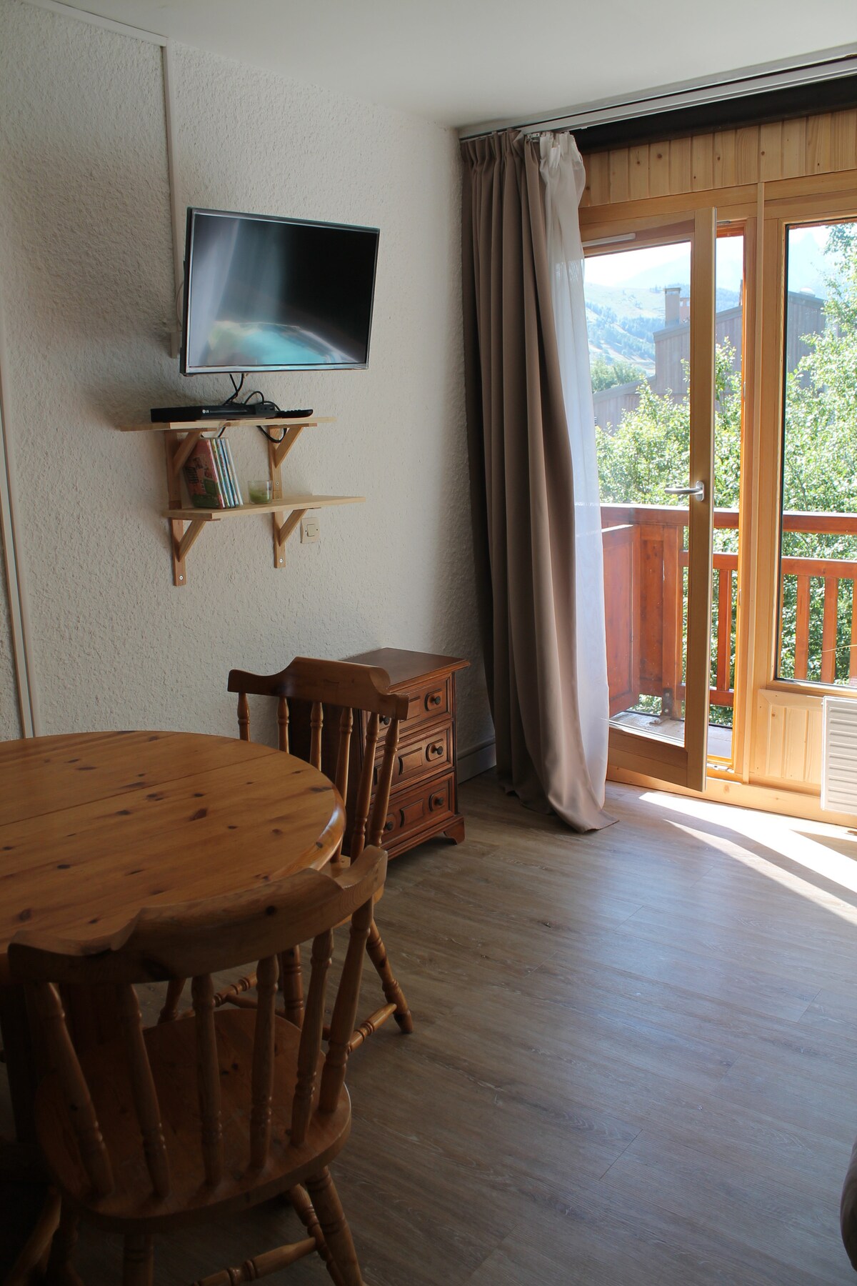 [Disponible du 4 au 11 avril 2026 suite à désistement]. Au 2ème et dernier étage d'une petite résidence, le studio confortable et fonctionnel offre une décoration de style montagne soignée ! Il est parfait pour 2 adultes et 2 enfants ou 3 adultes. Départ et retour skis au pieds ou navette au pied de la résidence, c'est comme vous voulez ! Parking fermé gratuit réservé aux résidents