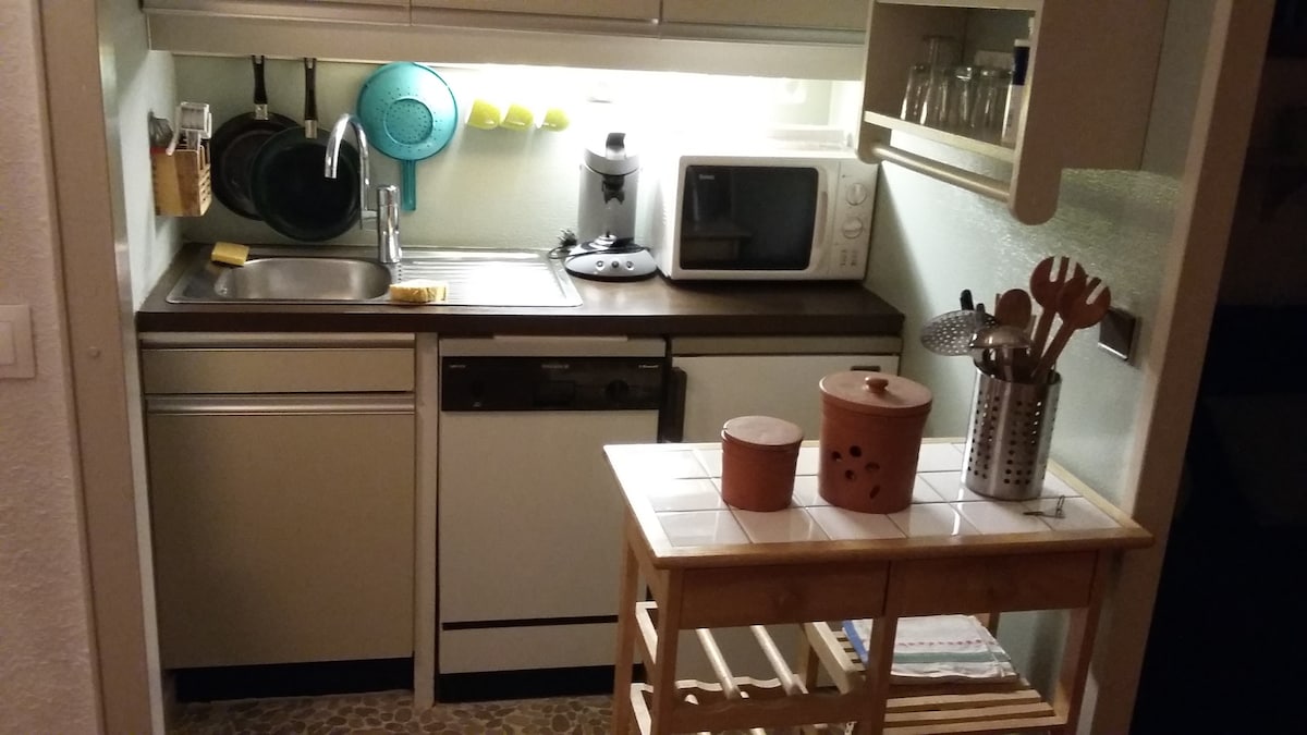 位於度假村中心(Côte Brune 公寓,步行 3 分鐘即可抵達 Jandri Express)的 12 平方公尺單間公寓。 客廳配有 130x190 的沙發床(200x200 的羽絨被 + 2 個枕頭)和平面電視,浴室配有淋浴間、洗手台和廁所。 設備齊全的小廚房、微波爐、烤箱、Senseo 咖啡機。 滑雪用具寄存處。 靠近所有商店。 住宅配有數位密碼鎖。 包含公寓標準清潔服務。 不提供床單和毛巾。