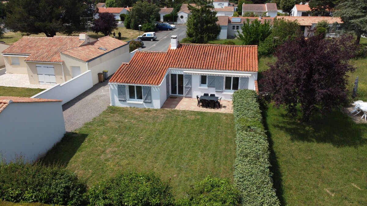 Pierre房子,花園距離Tranche/大海海灘15公尺。 寬敞的客廳,配有設備齊全的廚房。 樓上有2間臥室 您可以在露臺或面向花園的陽臺上安靜地休息。 -900公尺:船隻、槳板、獨木舟的自然保護區。 麵包儲藏室、酒吧、披薩亭、網球場。非常適合步行或騎自行車 -距離O 'gliss公園(水上公園)和O' fun (攀樹)、卡丁車、超市10分鐘路程 -35公尺的巖石 -距離Puy du Fou 1小時