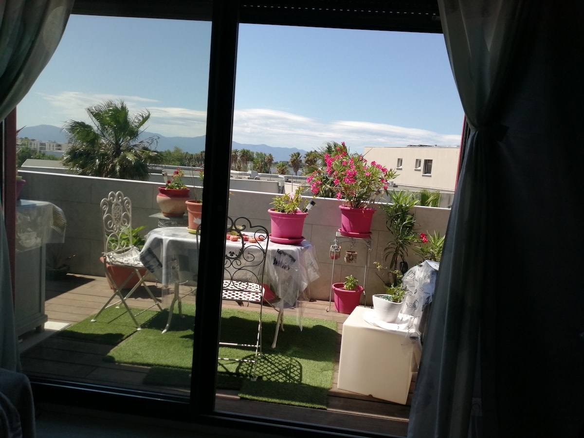 公寓配有空調、樹木繁茂的花園和露臺,位於安靜的住宅區,靠近佩皮尼昂市中心(5分鐘),距離巴士站50公尺,靠近卡內海灘、聖西普里安海灘(10公里/15分鐘)。 美麗的客廳,樹木繁茂的花園,設備齊全的廚房,洗碗機,2 間臥室,更衣室,淋浴間,帶洗衣機的洗衣房。車道停車方便。光纖網路/吹風機/熨斗/嬰兒床。