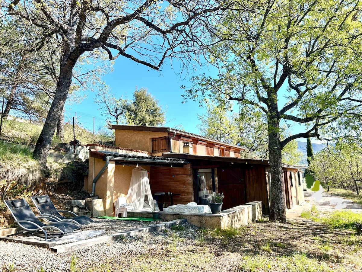 這個相當典型的棚屋散發著真實和普羅旺斯的魅力:室內溫馨舒適,大花園內明亮的起居室。 在石灰樹的陰涼下或火堆旁放鬆身心。運動好友,您也會發現您的幸福! 步行5分鐘即可抵達商店。 靠近攀巖景點、泳池、餐廳和電影院! Buis是一個相當正宗的村莊,坐落在Ouvèze河畔的山脈和橄欖樹林中