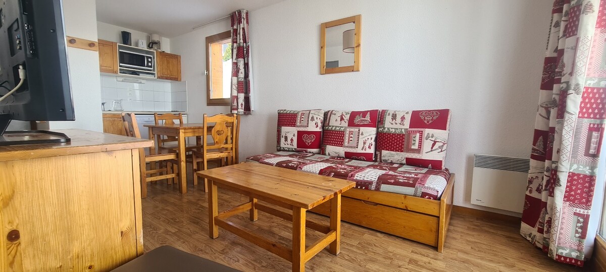 舒適的25平方米公寓,陽光充足,安靜的住宅,帶陽台。 滑雪儲物櫃和自行車存放處。 直達滑雪場。 位於Longes區,4樓,有電梯。 理想的位置,住宅的腳下有:麵包店、超市、滑雪租賃、餐廳、滑雪通行證、ESF課程、Le Marquis椅子升降機、夏季活動 住宅前面有免費停車設施。 冬季入住7日或以上的租金已包括清潔費。