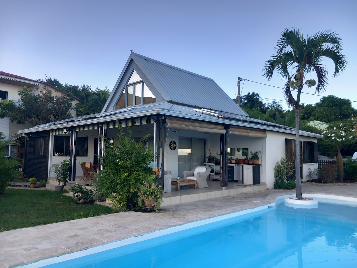 我們的平房距離機場 5 分鐘,旨在為您提供放鬆的住宿體驗。您將發現一個明亮通風的空間,配有舒適的臥室、設備齊全的小廚房、現代化的浴室和帶花園的私人露臺,您可以在這裡聆聽鳥鳴聲,放鬆身心。 靠近所有便利設施(商場、電影院、餐廳、藥局、麵包店、水池和瀑布),距離薩拉齊 (Salazie) 40 公里。