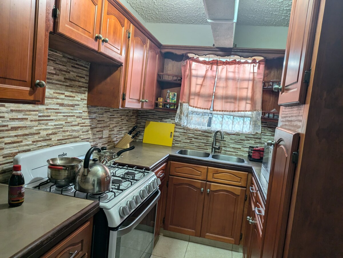 This apartment is centrally located in a very peaceful area. It's surrounded by a lawn, within a residential area that's close to various stores and restaurants. It's a 10 minute drive to the American Embassy, 5 minutes to Sky Mall and 20 minutes to Bridgetown. This apartment is spacious containing a full sized kitchen, living and dining area, a comfortable sized bathroom and a large bedroom. It has free Wi-Fi, microwave, fridge, stove, oven, television, hot water shower and small veranda.