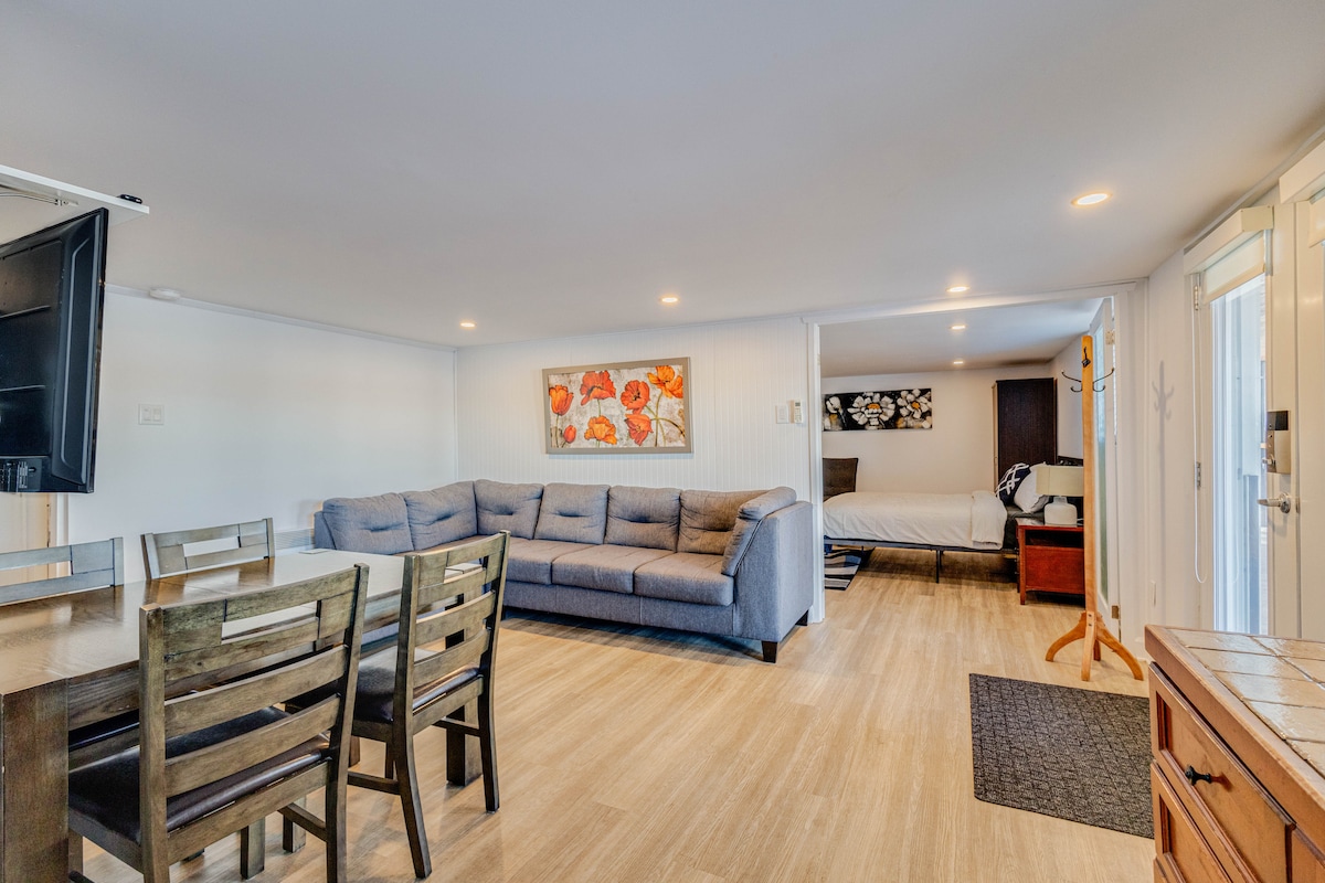 探索我們寬敞的 4 1/2 房,非常適合您在市區的住宿。享受 2 間優雅的臥室。在寬敞的露台上放鬆身心,欣賞日落美景。享受私人停車位,方便全家出入。步行 5 分鐘即可抵達主要街道,附近有最好的餐廳和酒吧。獨立入口,更加舒適和私密。立即預訂!