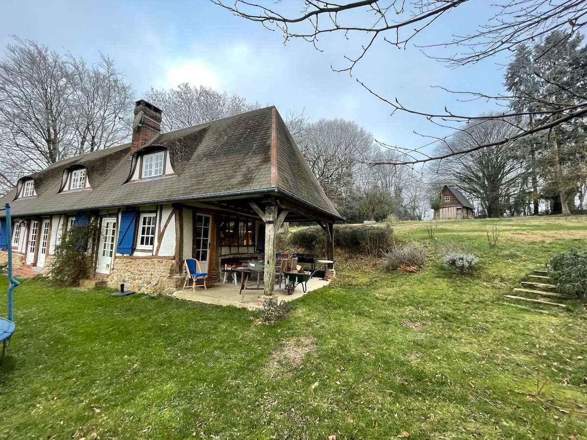 2020年翻新的諾曼底小屋(建於1759年) ,結合了舊式的魅力和現代的舒適,位於奧格地區(Pays d 'Auge),佔地2,000平方公尺的林地和私人土地,位於自然和森林區域。 房子靠近花海岸,距離金三角(多維爾、翁弗勒爾、蓬萊韋克)30分鐘,距離巴黎2小時。