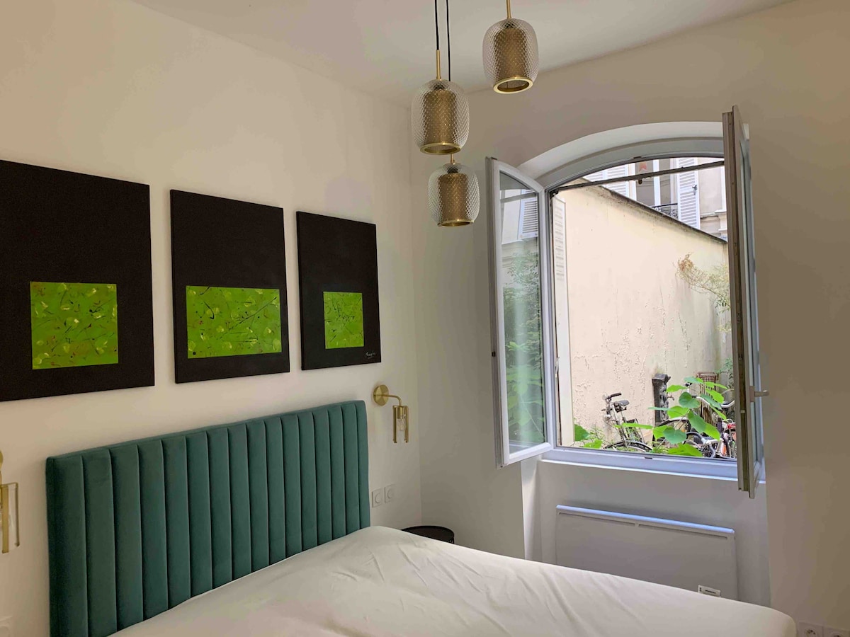 公寓位於蒙馬特區紅磨坊附近,位於一個非典型且安靜的城市中心;可俯瞰花園 這是一個 52 平方公尺的空間,不面向街道,一樓,遠離街道噪音,高級公寓,包括一個漂亮的臥室、一個休閒區、一個午餐/晚餐區、工作區、開放式或封閉式廚房。 配備新技術、極佳的 WiFi、大型電視(85 英吋)、高保真音響和可根據您的口味調整的照明