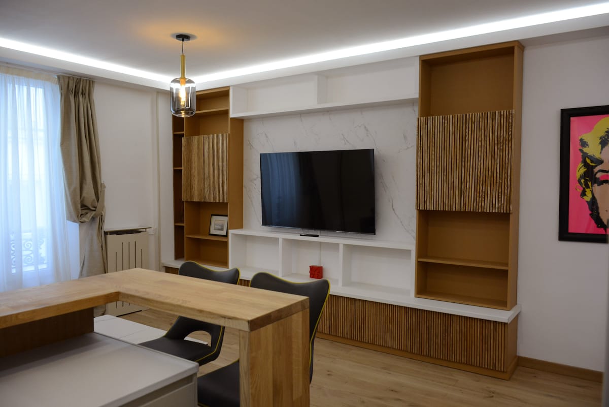 這間非常明亮的公寓位於蒙馬特(Montmartre)市中心,是巴黎最浪漫的街區,位於一條位置完美但安靜的街道上(步行2分鐘即可抵達聖心大教堂(Sacré Coeur)和特雷爾廣場(place du Tertre)),將使您在巴黎的住宿難以忘懷。 設備齊全(加大雙人床、家庭電影院、黑膠唱片機、洗衣機、毛巾、吹風機等)。 廚房配備您所需的一切。 如果您有任何疑問,歡迎與我聯絡:)