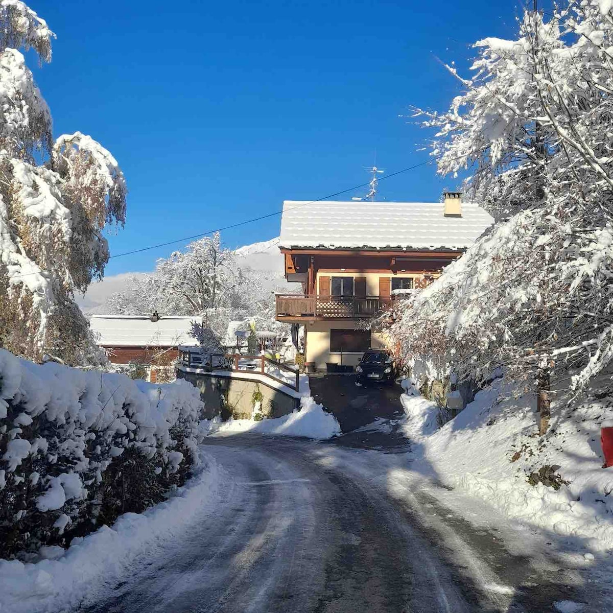 Logement spacieux décoré avec soin avec une grande pièce à vivre et une cuisine tout équipée.. la chambre est une suite avec douche et un grand lit (160x200) . Il y a un jardin avec une petite terrasse privative ainsi qu’un parking privé.. Le chalet est proche des restaurants, des activités adaptées (pistes de ski et alpin, chemin de randonnée et VTT).. parfait pour les couples, les voyageurs en solo, les voyageurs d'affaires.. MAIS UNIQUEMENT 2 PERSONNES (pas de bébé 👶)