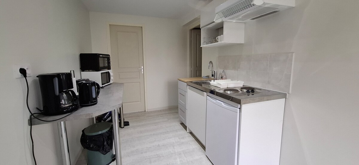 Profité un logement élégant, situé en centre ville de Gien. - Studio 20m2 entièrement rénové: - Disposant d'un séjour, Télévision, Table base escamotable ,Table pour manger ou bureau, avec un petit canapé 2 places. - Un coin nuit avec un lit double de 140 x 190 d'une penderie. - Une salle de bain - Cuisine entièrement équipé Plaque gaz deux feux, four, micro onde, hotte, frigo cafetière ,bouilloire..) avec vue sur la Loire - Parking gratuit dans la rue - wifi fibre
