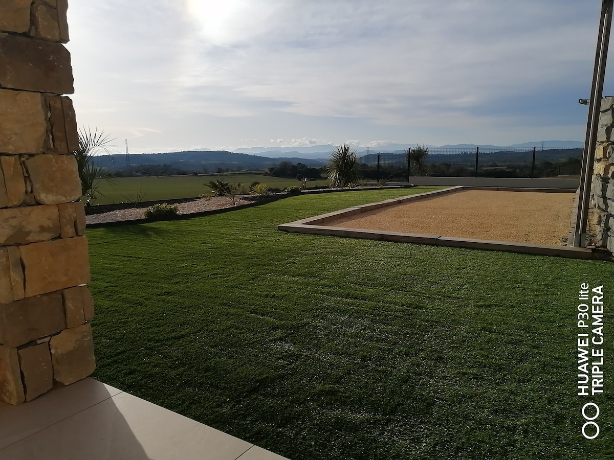 位於一個寧靜的村莊,擁有度過愉快假期的必要設施:俯瞰瀑布泳池的大露臺、與家人或朋友一起享用美食之夜的燒烤、涼爽放鬆夜晚的空調... 您將有3間帶衣櫃的臥室,美麗的客廳,配有設備齊全的廚房(烤箱、微波爐、電磁爐、洗碗機)。 別墅通道沒有臺階,有5個樓梯。