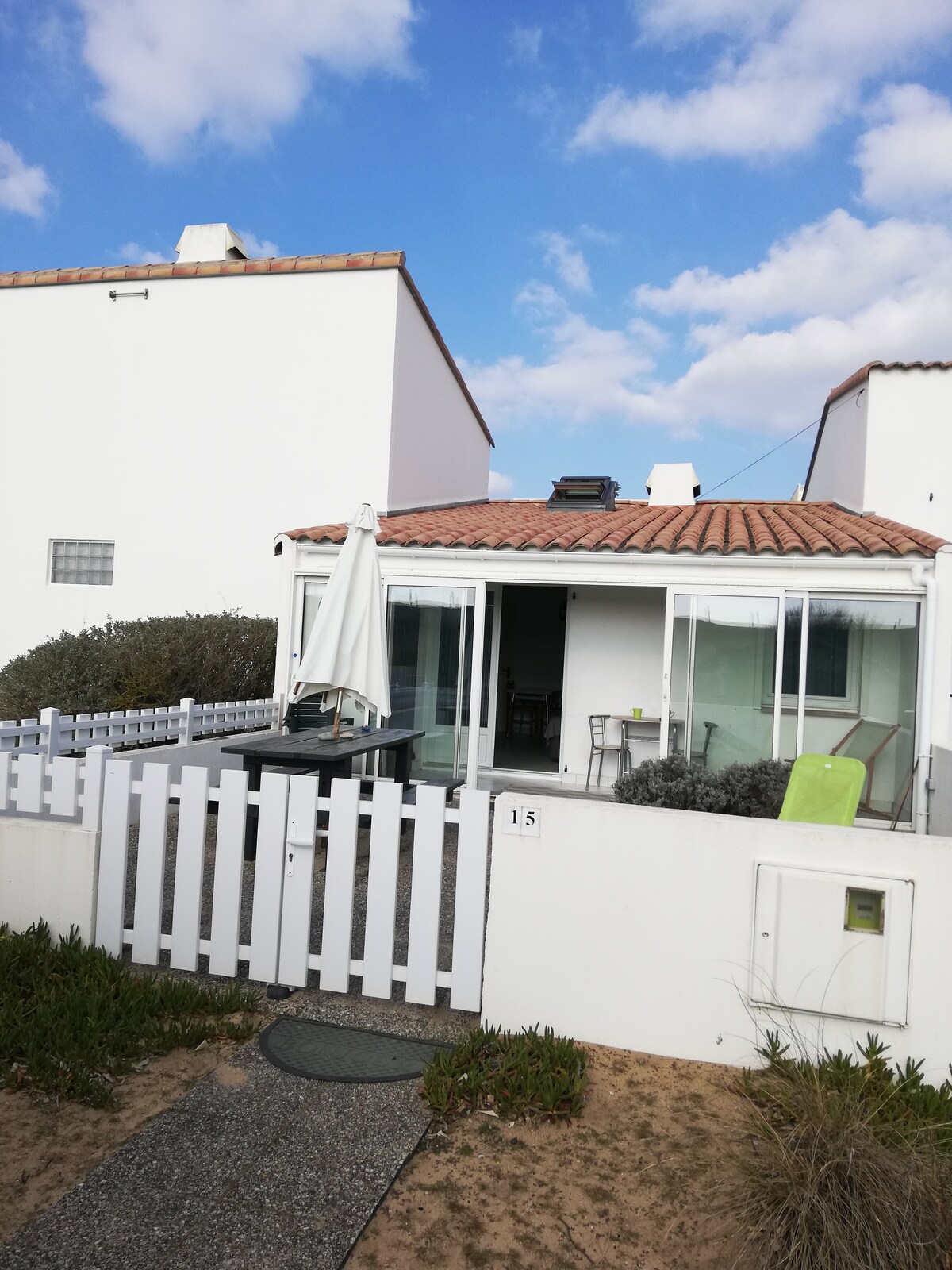 Maison toute neuve à 150 mètres de la plage de La Baie de la Pipe, nous sommes à côté de l'école de voile et du centre équestre, expo plein sud. Pièce de vie avec salon et cuisine équipée tout confort, chambre avec 2 lits de 80cm (ou un grand lit de 160cm), canapé convertible de qualité , douche italienne, wc indépendant, draps, serviettes et linge de maison fourni, terrasse équipée, barbecue Weber, lit de soleil, wifi ...