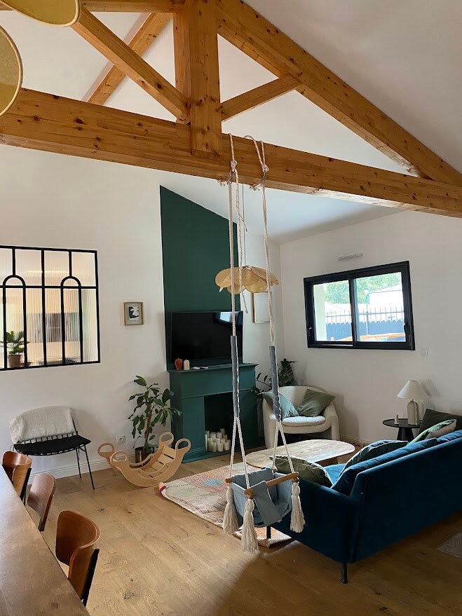 想在完全隱私的情況下探索波爾多地區嗎? 逃離這間時尚的37平方米公寓。 有: -漂亮的4平方公尺涼亭 -舒緩的客廳,配有沙發牀和電視( 108釐米) -一間配有舒適雙人牀和電視( 80釐米)的繭式臥室 -設備齊全的廚房 -洗衣機和烘乾機 -嬰兒設備 這棟房子在2023年進行了翻修。 您可以在有蓋且安全的停車位內享受私人停車位。