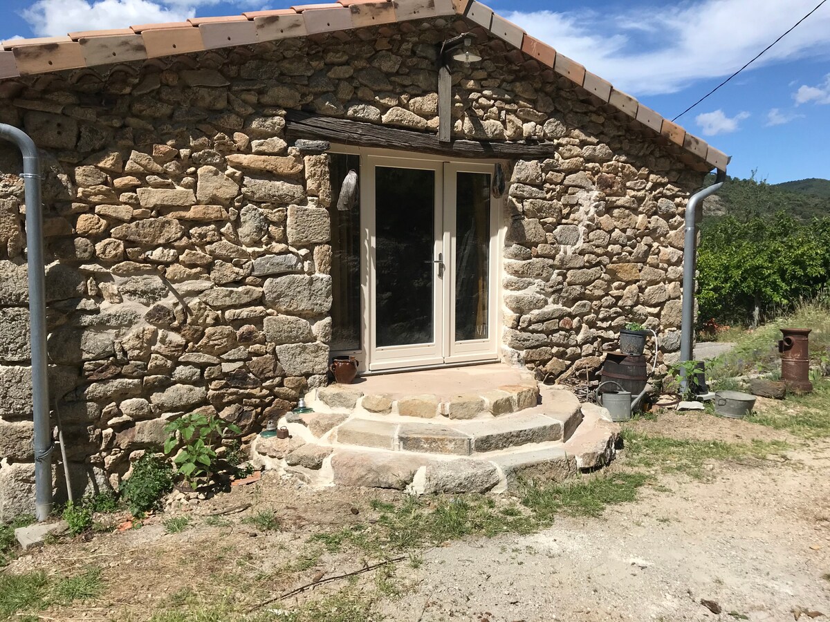 這間 35 平方公尺的單間公寓位於一個小穀倉的樓上。配有一張160公分寬的床、一間設備齊全的廚房和一間帶浴缸和廁所的浴室。位於一個小村莊的邊緣,有一個露台區,可以欣賞塔納爾格河 (Tanargue) 的壯麗景色。NID DANS LA PIERRE 團隊